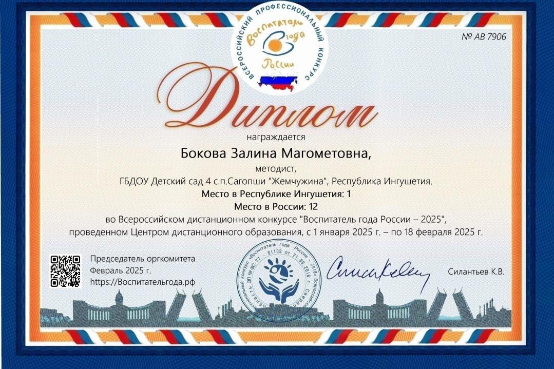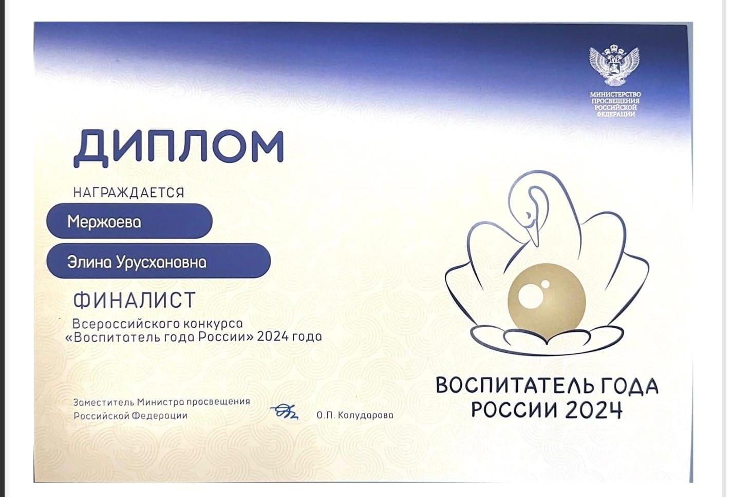 Благодаря слаженной работе нашего руководителя и педагогического состава, наш воспитатель Мержоева Э.У. стала победителем муниципального конкурса"Воспитатель года-2024",а также республиканского этапа конкурса "Воспитатель года-2024".