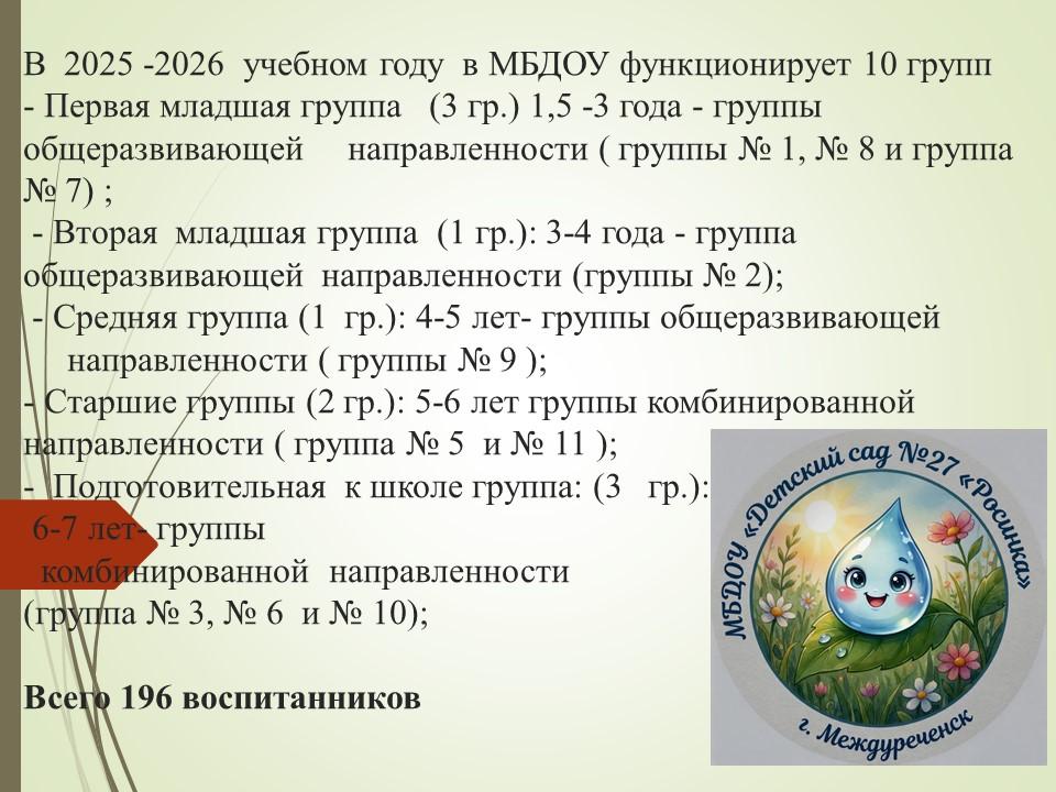 Муниципальное бюджетное дошкольное образовательное учреждение «Детский сад комбинированного вида №27 «Росинка» функционирует с 1969 года.