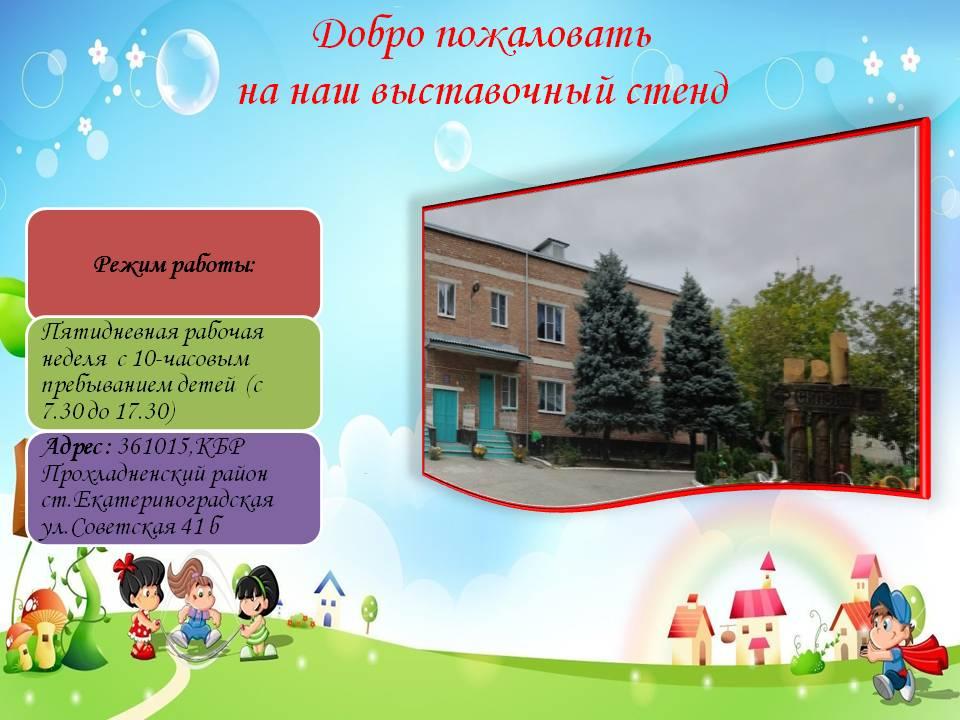 Режим работы: пятидневная рабочая неделя с 12 часовым пребыванием детей. Ежедневный режим работы с 6.30 до 18.30